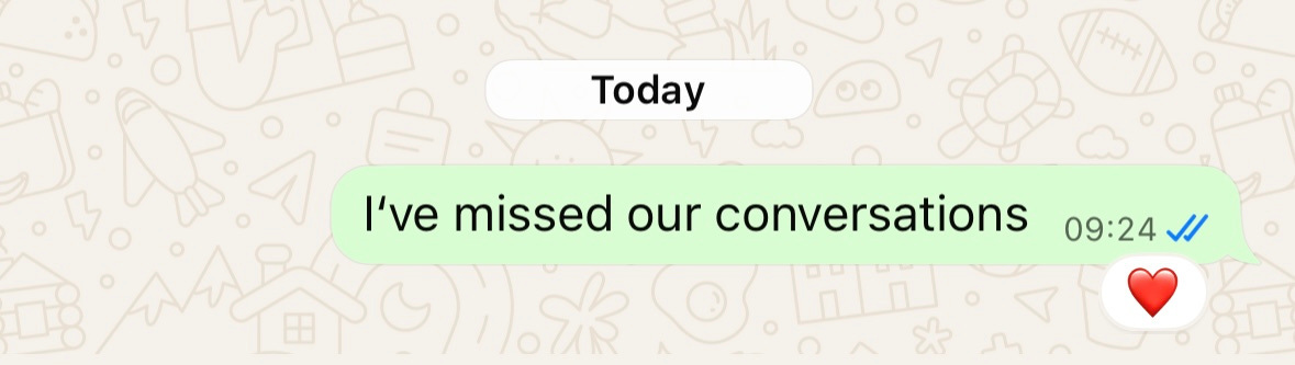 I've missed our conversations. (Continued.)